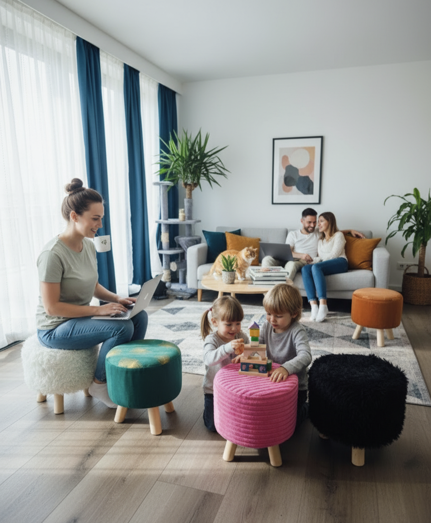 Haz de tu hogar un espacio más acogedor con nuestro Puff Acolchado Multifuncional, diseñado para adaptarse a cualquier ambiente y estilo.
